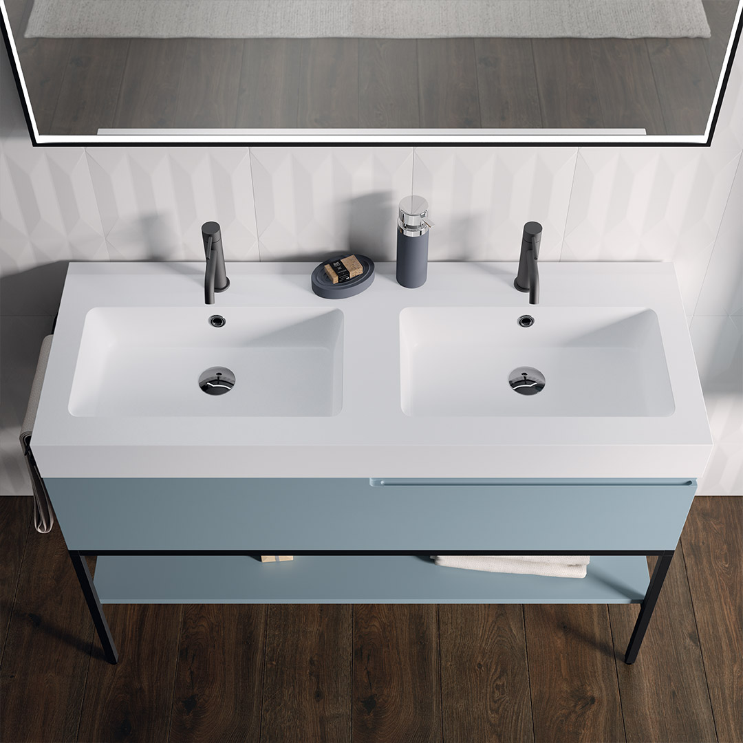 L414VML Washbasin W.140 H.1,3 D.46 2 BASINS in mineralmarble bianco lucido