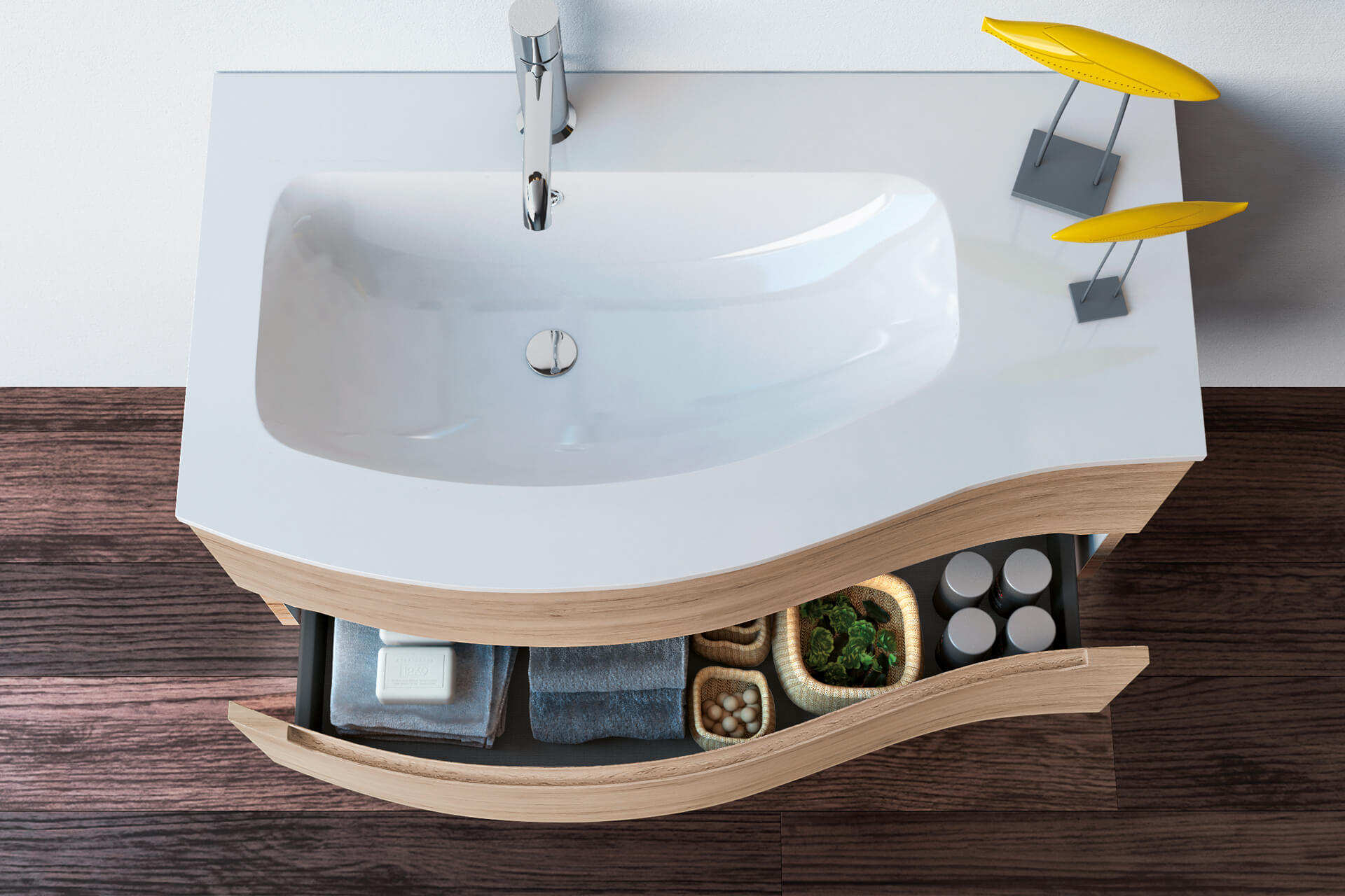 AG09DS Base portalavabo AGAPE Dx L.90 H.50 P.48 2 cassetti rovere nodi