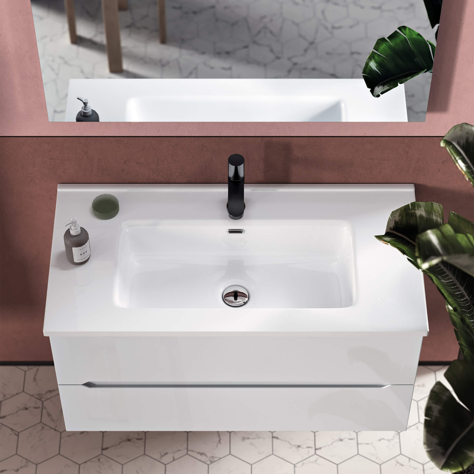 LEA09CC Lavabo EASY ceramica L.90 H.1,3 P.46 VASCA CX bianco lucido
