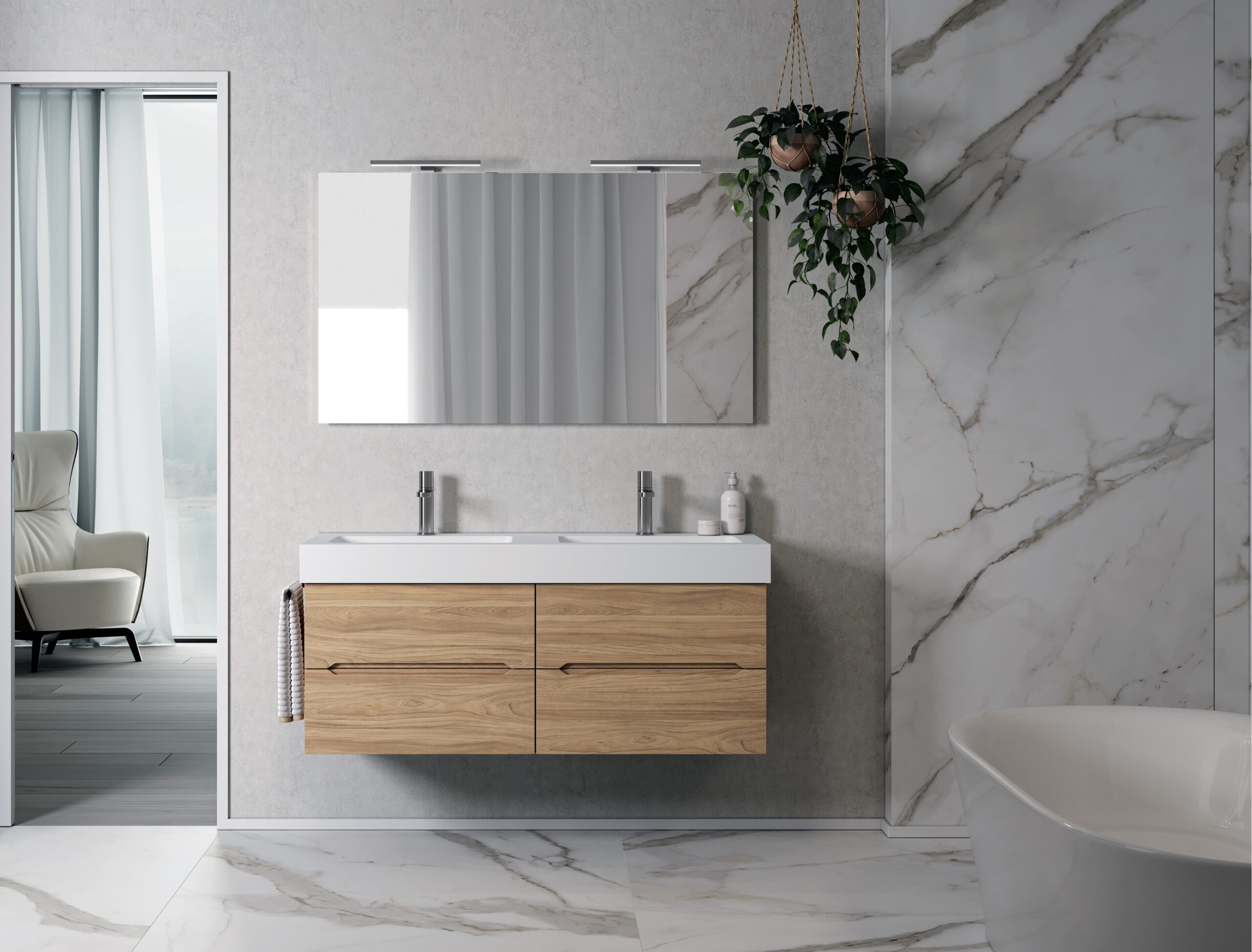 EA06CS Base portalavabo EASY AFRODITE 2 cassetti L.60 H.45 P.46rovere chiaro (x2)