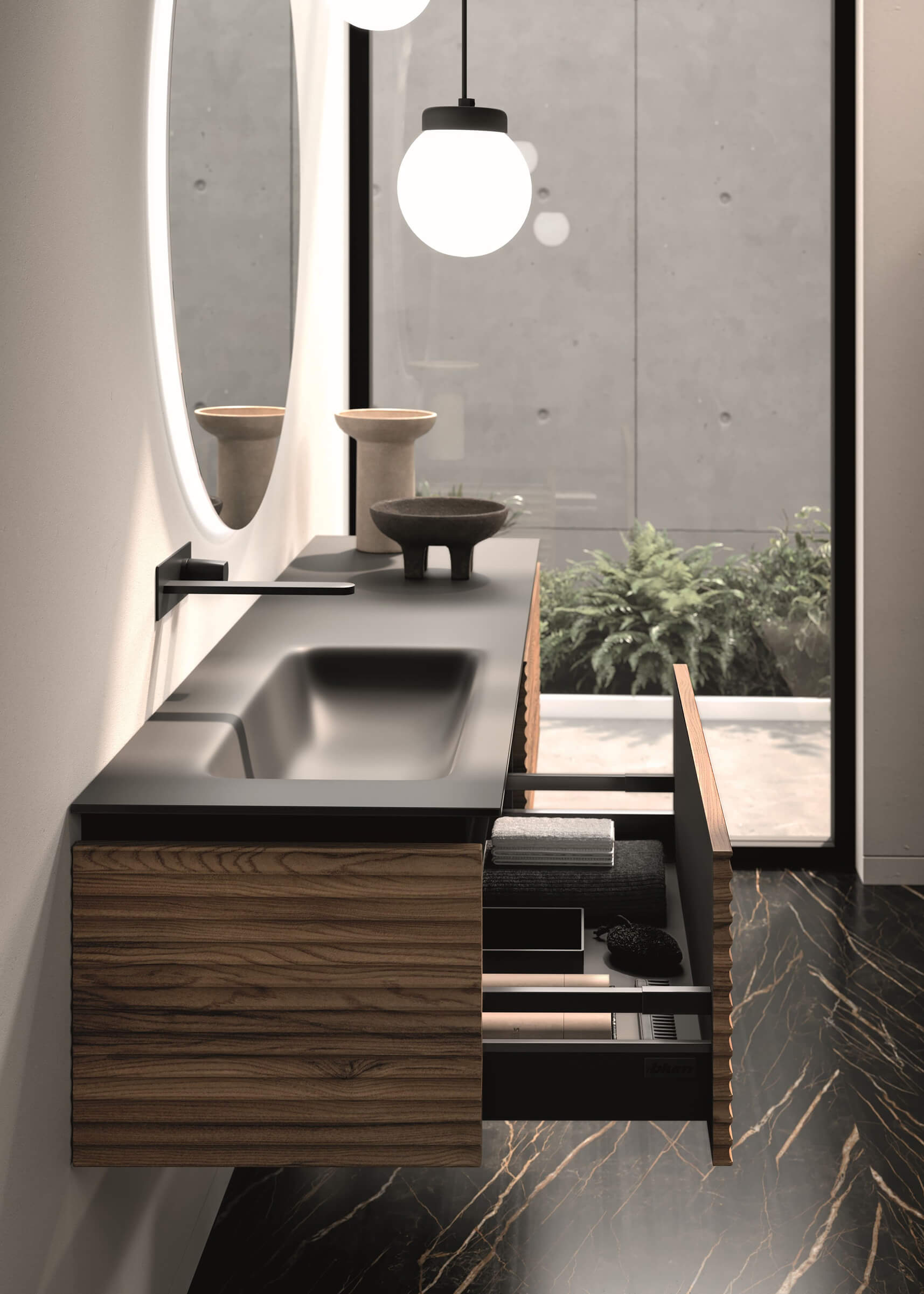 L418SVS Lavabo cristallo L.180 H.1,2 P.46 VASCA SX senza foro nero satinato